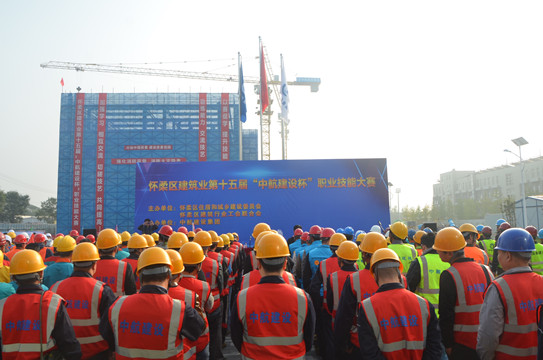 10月18日,由怀柔区住建委、建筑行业工会联合会共同主办,华体会(中国)协办的怀柔区建筑业第十五届“中航建设杯”职业技能大赛,在我集团公司承建的一零一中学怀柔校区扩建项目部拉开帷幕。怀柔区住建委工程质量监督站站长单焜,区建筑业协会会长王贵军,区总工会生产生活部部长李文兴,区人力资源和社会保障局职工培训劳动鉴定中心主任刘利民,集团公司总工程师陈劲,工会主席郑春梅一同出席本次活动。