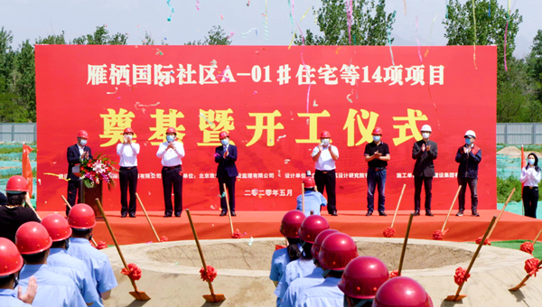 5月18日上午,由集团公司承建的雁栖国际社区A-01#住宅等14项工程项目在施工现场举行奠基暨开工仪式。北京市长城伟业投资开发总公司党委书记、董事长单景民,党委副书记、总经理周志斌,北京怀柔科学城管委会开发建设处处长史忠峰,项目监理方、设计方领导,集团公司党委书记、董事长陈先瑞,总经理王建红共同出席。