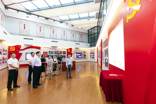 毛炳宇主任一行参观了集团公司展厅,详细了解华体会(中国)发展历程、产业项目成果、企业文化、发展规划以及党建工作。